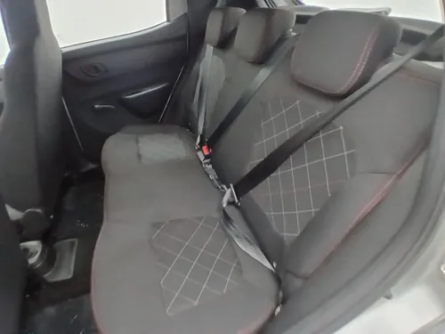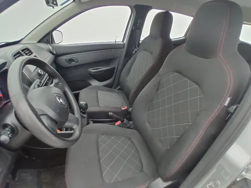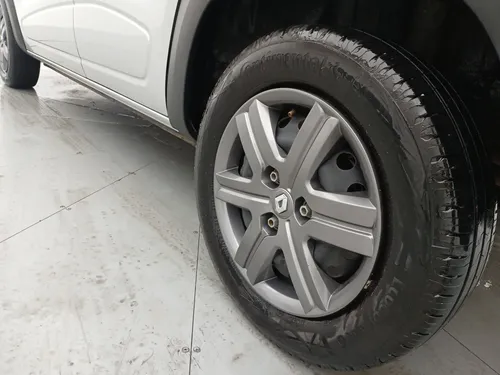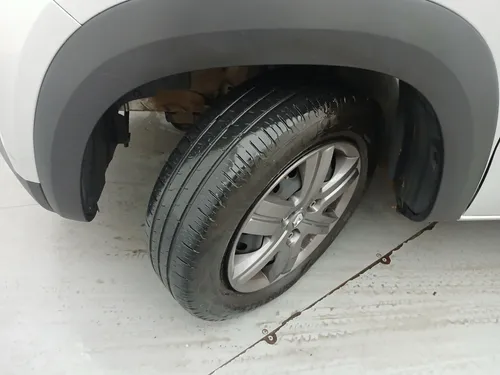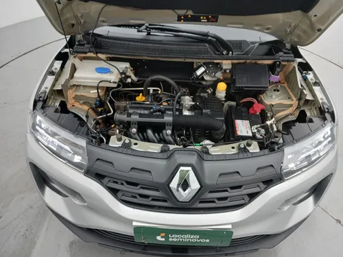 A carroceria hatch combina estilo e praticidade enquanto a cor prateada confere um toque de modernidade ao design. Além disso o Kwid é equipado com direção elétrica proporcionando maior conforto em manobras e dirigibilidade. Seu espaço interno é surpreendente para um carro dessa categoria perfeito para famílias pequenas ou para quem precisa de um veículo para o trabalho.
