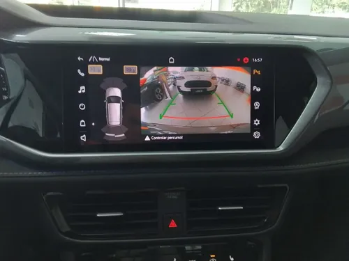 O Taos na versão Highline vem na sofisticada cor bege que combina elegância e praticidade ideal para quem aprecia um visual refinado. Além disso o sistema de direção elétrica proporciona uma experiência de condução confortável e precisa seja no trânsito intenso da cidade ou em passeios mais longos.